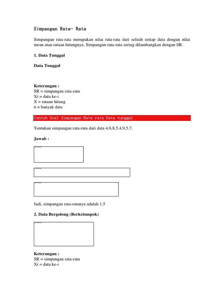 Rumus Simpangan Rata Rata Contoh Soal Cara Menghitung from pengajar.co.id 10, 6, 5, 7, 8, 7, 9, 12 adalah…. 8, 14, 10, 13, 11, 9. S = √ ∑ n i = 1 ( x i − ¯ x) 2 n = √ 10 5 = √ 2. Rumus untuk mencari simpangan baku adalah: Simpangan baku dari data 7 3 6 7 8 6 5 10 4 4 adalah brainly co id. Dalam mencari kuartil dari tabel tersebut, kami buat juga frekuensi kumulatif. Tentukanlah jangkauan interkuartil & simpangan kuartil pada data berikut ini : Karena itu dalam menghitung simpangan bak, hanya memerlukan akar kuadrat dari nilai varian tersebut, yaitu s = √30,32 = 5,51.