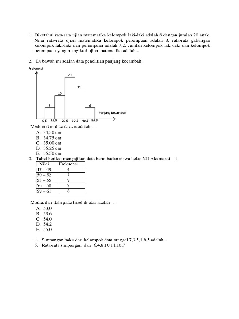 Hitunglah simpangan baku dari data tunggal 5,3,5,4,6, dan 7.